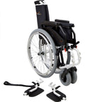 - Ruote posteriori da 600 mm, solide, con cerchi scanalati e sistema di sgancio rapido per facile trasporto e stoccaggio