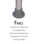 Es regulable en altura en 10 cm de forma independiente cada pata. Las patas tienen conteras con ventosas de alta adherencia para proporcionar mayor estabilidad Su uso está recomendado para personas mayores, ancianos, personas con movilidad reducida o que tienen alguna dificultad para permanecer de pie mucho tiempo.