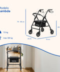 • ROLLATOR POUR PERSONNES ÂGÉES: Le Déambulateur Lambda est idéal pour l'usage quotidien. Ses roues maniables de 15 cm garantissent une mobilité agile et fluide en intérieur et des performances fiables à l'extérieur. Son design léger facilite les manœuvres dans les espaces réduits.