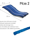 Ce matelas anti-escarres avec compresseur de couleur bleue modèle Mobi 2, est indiqué pour la prévention des ulcères de pression de phase II chez les patients alités pendant de longues périodes. La prévention des ulcères de pression ou escarres, comprend également de bons soins de la peau, la meilleure nutrition possible, l’adoption d’une bonne posture et l’utilisation de produits anti-escarres.